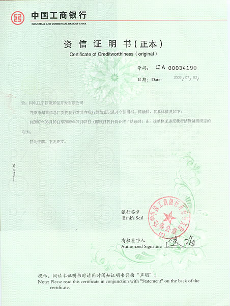 資信證明書(正本)