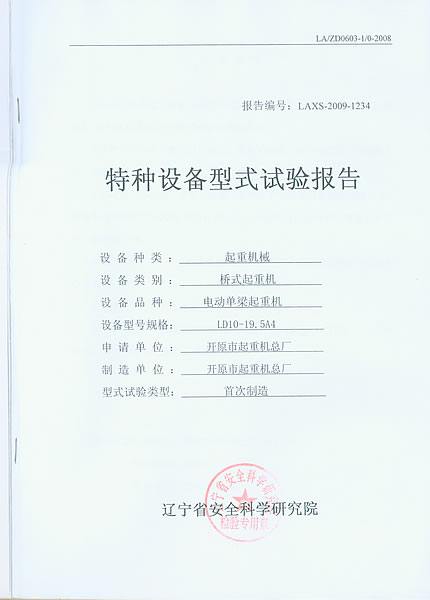 特種設(shè)備型式試驗報告